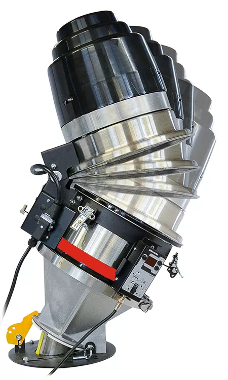 - Magnetic backed control pendant mounts on hopper and other metal surfaces convenient to the operator.