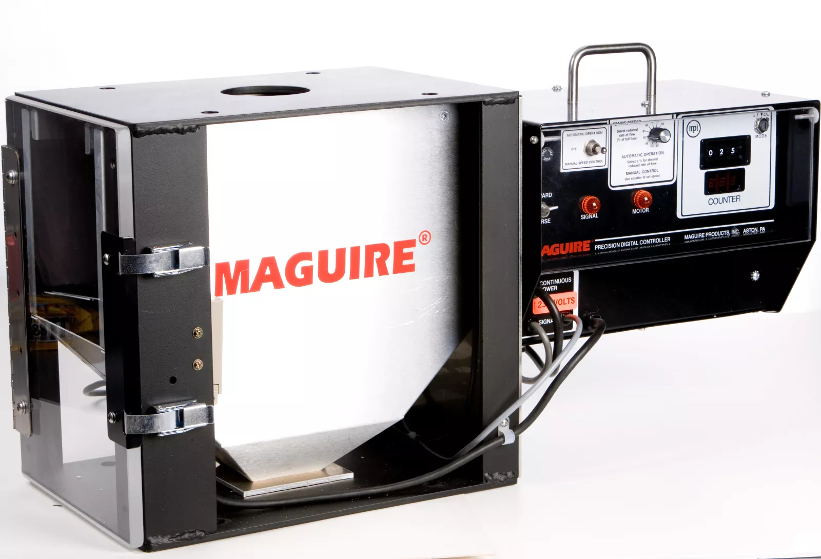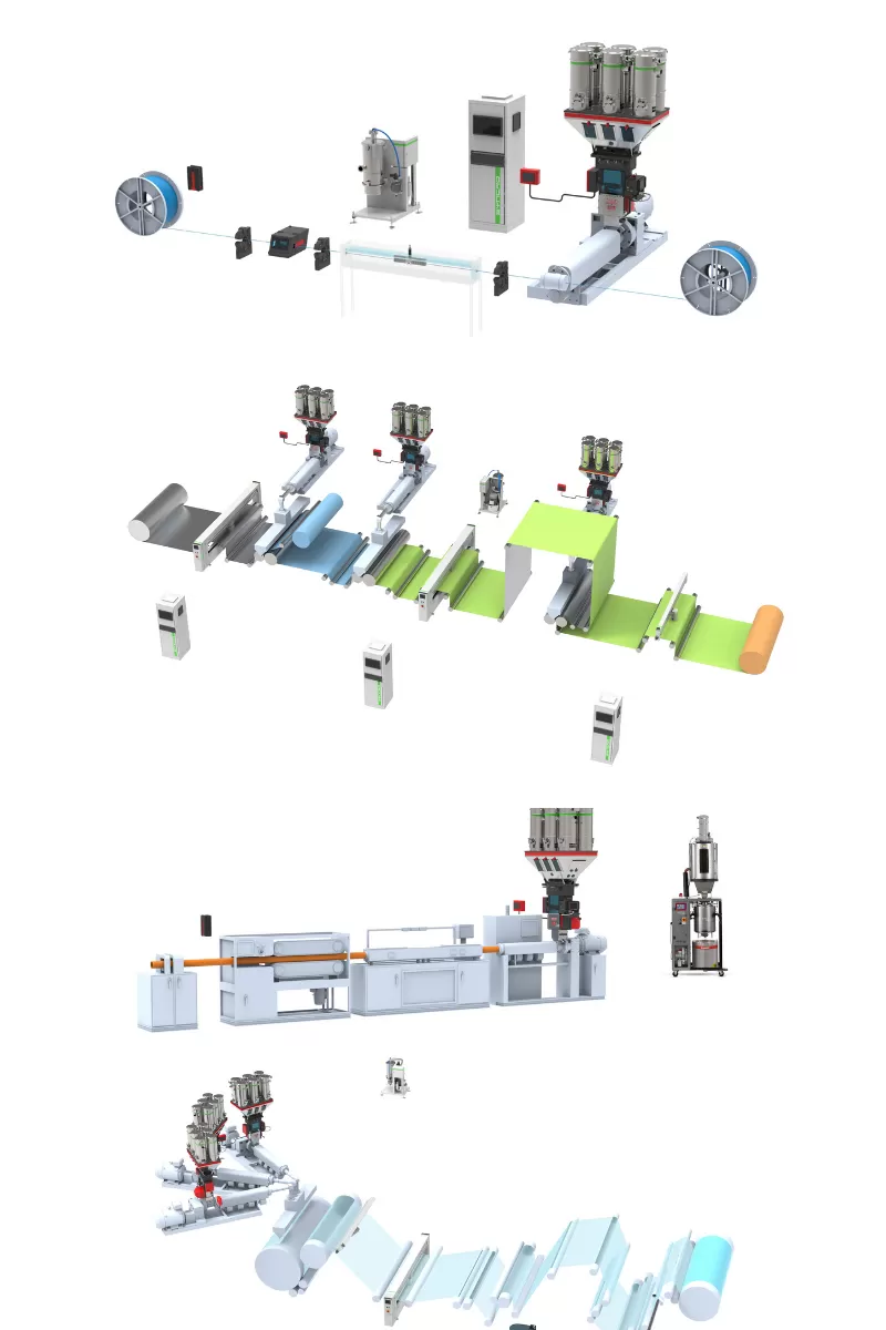 - Comprehensive loss-in-weight control, monitoring live consumption rate to an extruder and updating process rate every second.