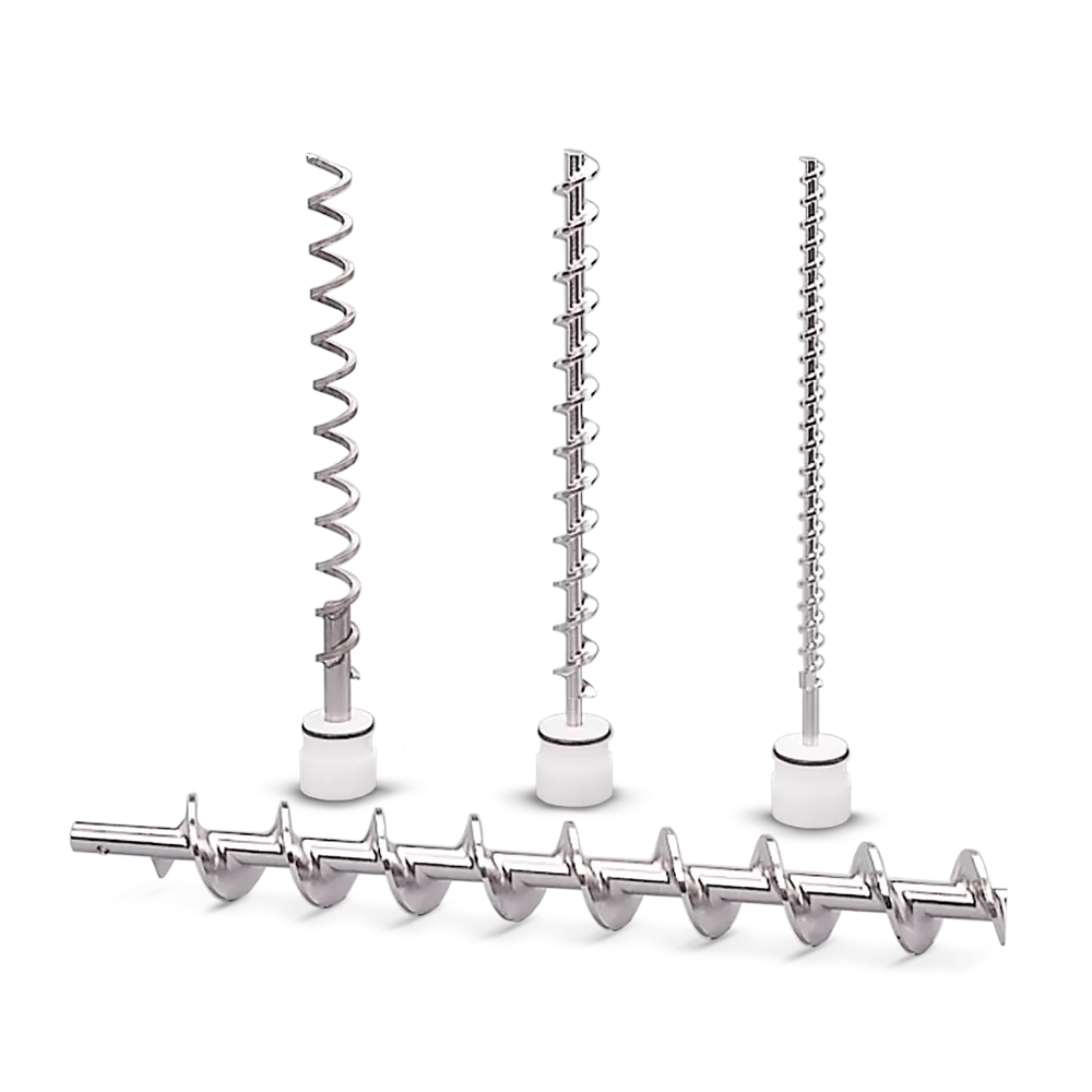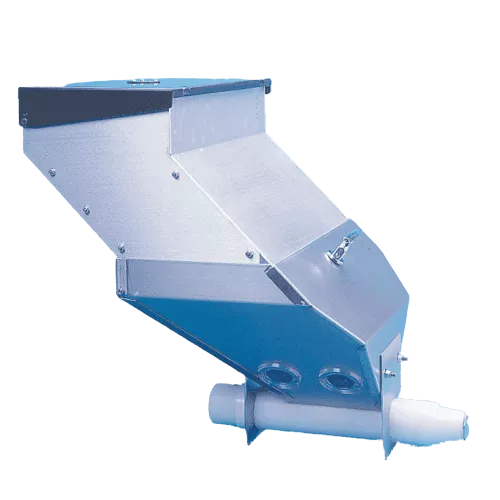 - Hopper features an integrated powder paddle that sweeps the bottom of the hopper every 2 turns of the spiral auger.
