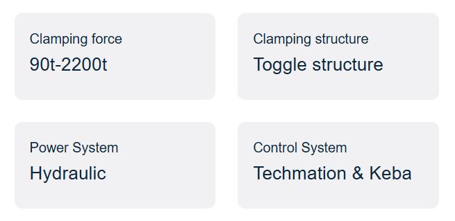 NEO·T Toggle System Injection Molding Machine adheres to the design concept of minimalist elegance; every line, detail, and piece is born for performance optimization. Tederic NEO·T toggle injection machine adopts a new generation of servo power systems that save 30% to 80% of energy compared with traditional hydraulic systems. Ultra-high response speed, short cycle time, and widened the molding process.